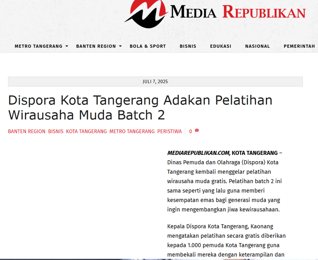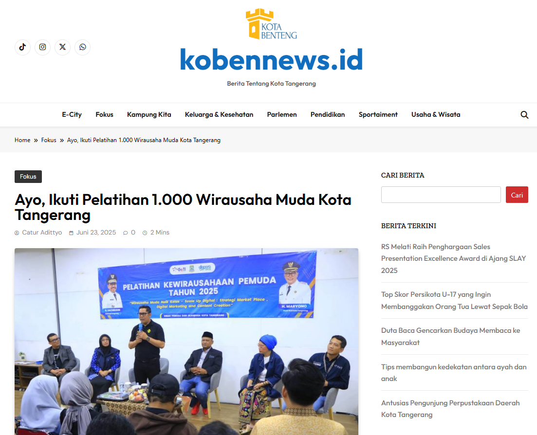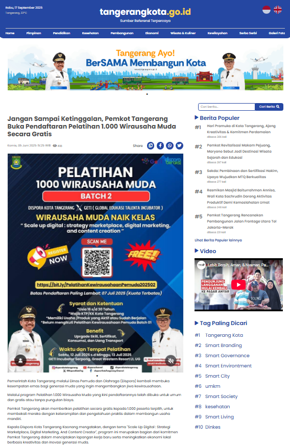 Tangerangkota.go.id – Jangan Sampai Ketinggalan, Pemkot Tangerang Buka Pendaftaran Pelatihan 1.000 Wirausaha Muda Secara Gratis
