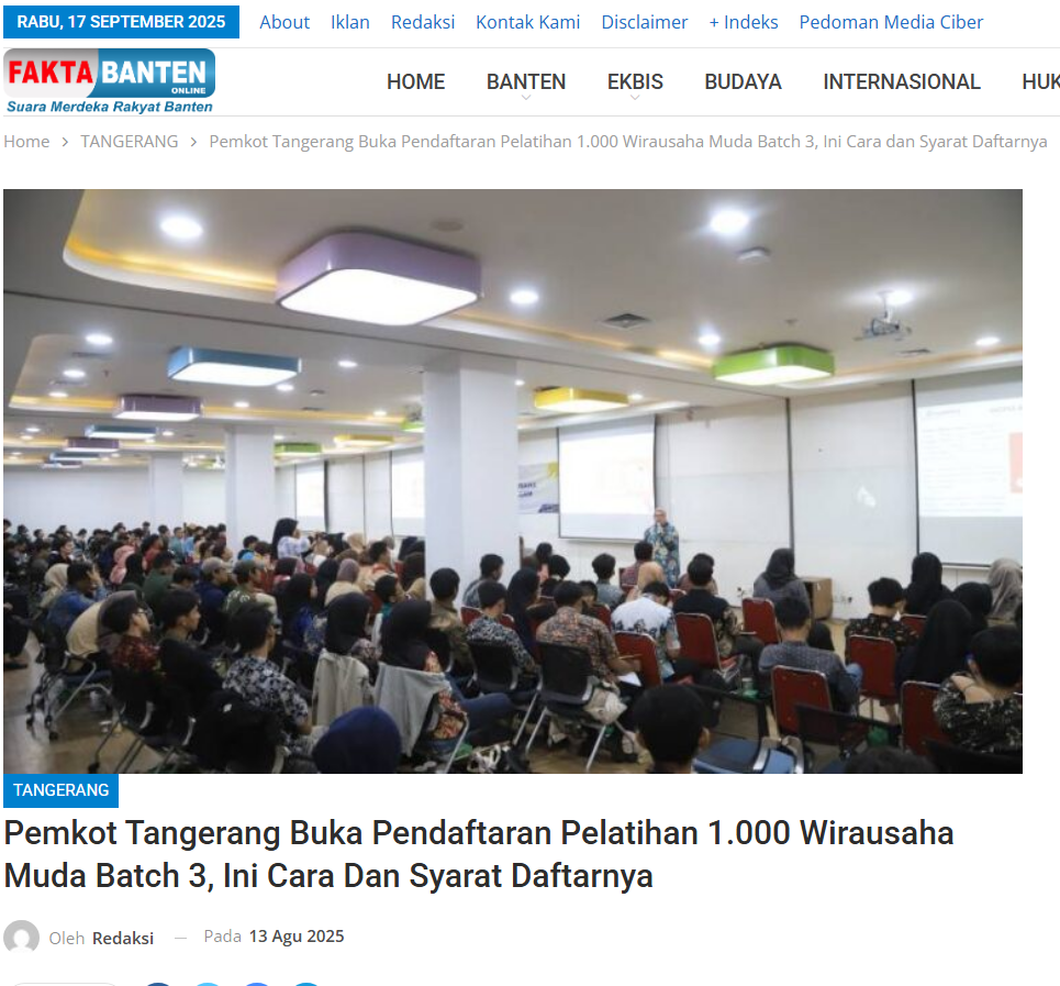 Faktabanten.co.id – Pemkot Tangerang Buka Pendaftaran Pelatihan 1.000 Wirausaha Muda Batch 3, Ini Cara dan Syarat Daftarnya