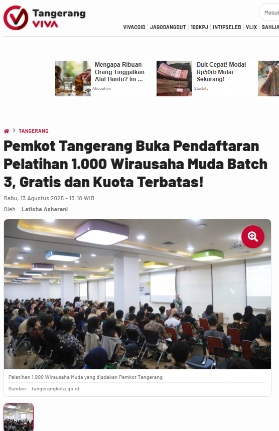 Tangerang.viva.co.id – Pemkot Tangerang Buka Pendaftaran Pelatihan 1.000 Wirausaha Muda Batch 3, Gratis dan Kuota Terbatas!