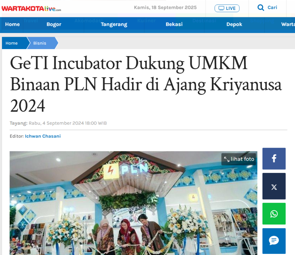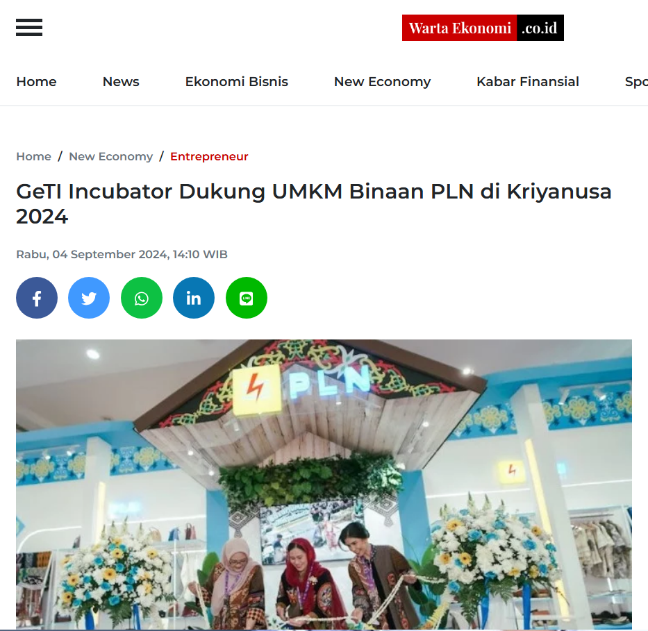 Wartaekonomi.co.id – GeTI Incubator Dukung UMKM Binaan PLN di Kriyanusa 2024