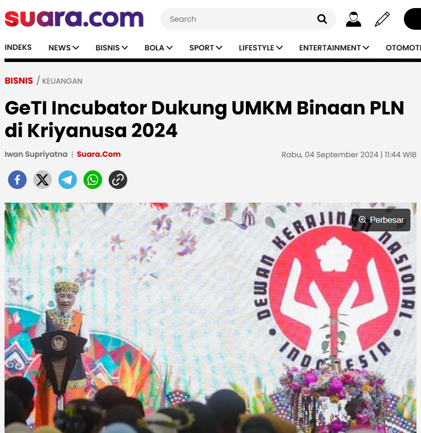 Suara.com – GeTI Incubator Dukung UMKM Binaan PLN di Kriyanusa 2024
