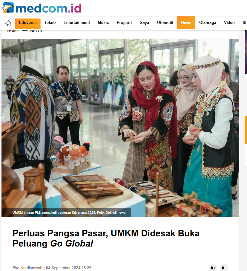 “Kriyanusa 2024 ini dapat menjadi wadah bagi seluruh pelaku UMKM. Karena selain pengunjung di tingkat nasional, banyak juga pengunjung dari mancanegara. Sehingga ini menjadi peluang untuk membawa produk UMKM Binaan PLN go global,” ujar Diny.
