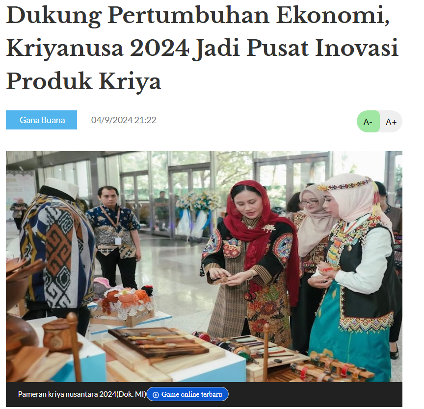 MediaIndonesia.com – Dukung Pertumbuhan Ekonomi, Kriyanusa 2024 Jadi Pusat Inovasi Produk Kriya